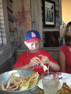 Grandma and Grandpa Schroeder took us to an Angels Game! It was Ryan's first MLB game! We stopped at Bass Pro Shop for some Crab Legs before the game...Ryan's favorite! Ryan had the time of his life!
